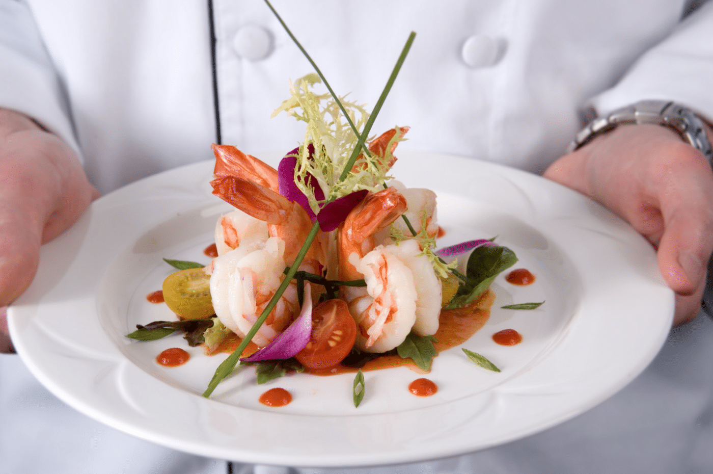 - Entrée : Carpaccio de saumon, huile vierge du chef